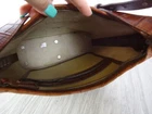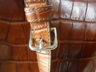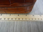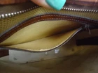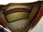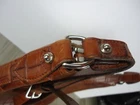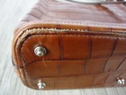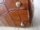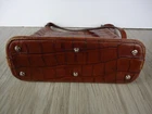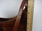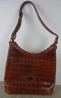 VTG Dooney and Bourke Brown Leather Crocodile Embossed Classic Crossbody Handbag Preowned used condition with signs of wear. There is some scuffing, rubbing wear on the bottom edges as shown in the pictures. There is a spot of discoloration on the front and the top edge as well that are both pointed out up close in the pictures. There is a moderate amount of discoloration and staining on the interior of the bag that is shown in the pictures at multiple angles. Please see all pictures for condition.
