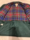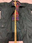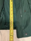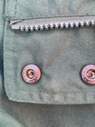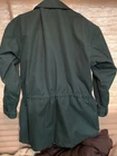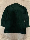 Used. Size Small. Has a faint white mark on the back of the jacket. Has a faint white stain on the collar by the buttons. It has a zipper and button closure. Has an inside pocket. From armpit to armpit it is approximately 21.5” inches across while laying flat. Please review all photos.