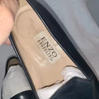The product is a pair of vintage Enzo Angiolini Lafayette slip-on loafers in navy blue leather. These square toe shoes feature a 1" heel height and come in size 8M. Perfect for various occasions such as career, everyday, and casual outings, these loafers offer comfort and arch support with a leather lining and insole. Made in Brazil, they are a stylish addition to any woman's shoe collection, suitable for all seasons. The toe shape is slightly square but yet rounded too. See pictures.
