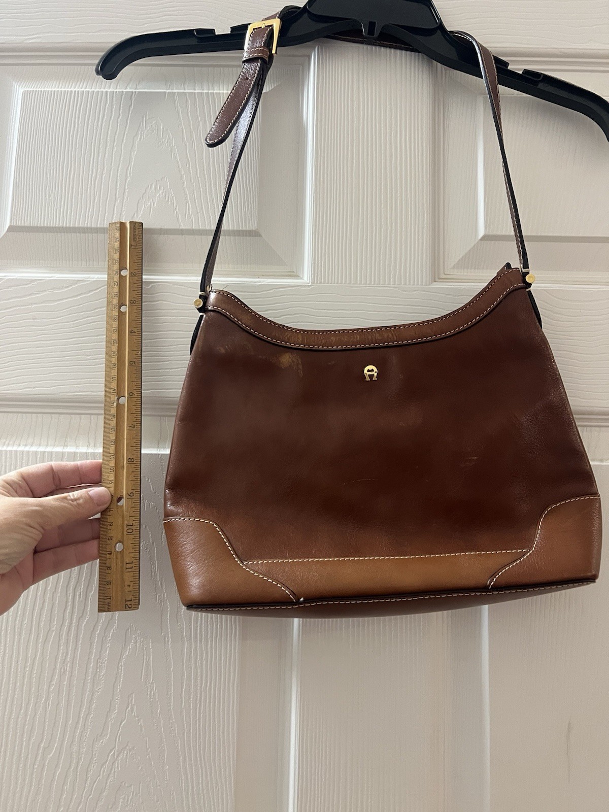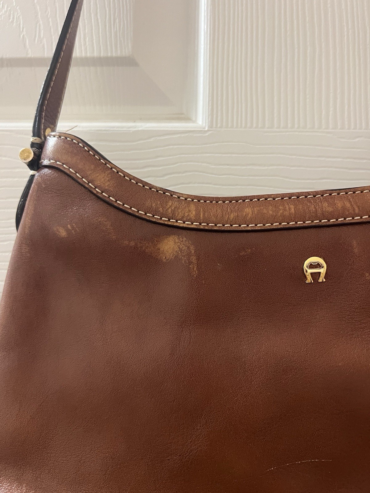 Stunning vintage leather, see small slight discoloration noted in the picture on the top left. Three compartments on the inside. Adjustable strap, nice hardware and leather logo patch inside.