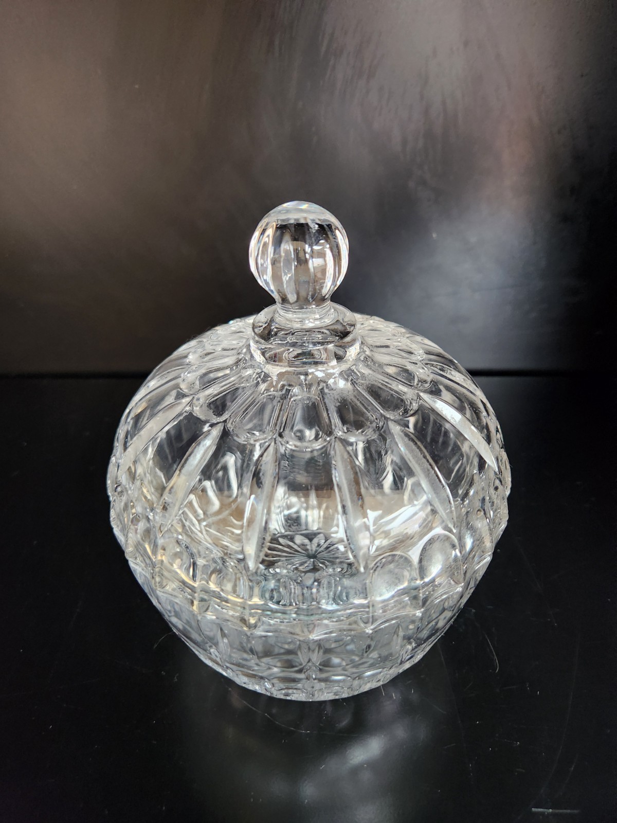 The VTG Fairmount Clear Lead Crystal Thumbprint Pattern Candy Dish with Lid is a vintage piece made of clear crystal, featuring an etched thumbprint design. With a round shape and a height of 7 inches and a width of 6 inches, this candy dish is perfect for all occasions and would make a beautiful addition to any collection of glassware. The original brand, Fairmount, adds to its charm, and its vintage manufacturing time period from 1950-1959 gives it a unique and classic appeal. The lid included with the set adds to its functionality and aesthetic value.