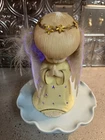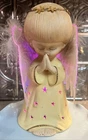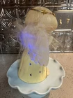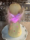 This vintage figurine features a beautiful praying angel with wings of feathers. The angel measures 8.5 inches in height and is decorated with changing multicolor fiber optics for a stunning display. Perfect for any room, this figurine is a great addition to any collection or as a decorative piece for the Christmas season. The item is vintage and has vintage wear please see pictures. Pedestal not included