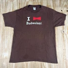 Add some vintage flair to your wardrobe with this rare Fruit of the Loom Budweiser graphic crewneck T-shirt. Made in Mexico in the 1990s, this limited edition shirt features the iconic Budweiser logo in a brown color scheme. The shirt is made of a comfortable cotton blend fabric, making it perfect for all seasons and easy to care for with machine washable garment care. This T-shirt is perfect for those who love classic and retro styles, as well as those who enjoy art, music, and sports themes. The shirt is a size XL and has a regular fit, making it suitable for most men. Don't miss out on this unique piece of clothing that showcases the iconic Budweiser logo. SKU: PK-36-11
