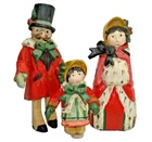 Highly collectible set of 3 "House Of Hatten" Victorian Man, Woman and Girl Carolers, Denise Calla Ornaments or figurines. Approximate measurements are: Man: 7.75 inches tall x 4.25 inches wide x 2.25 inches deep. Woman: 6.75 inches tall x 3.25 inches wide x3.50 inches deep. Little Girl: 4.75 inches tall x 3.50 inches wide x 2 inches deep.