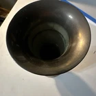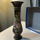 This vintage brass vase is a stunning piece of handcrafted art. Its intricate etched and hand-painted floral design makes it a unique addition to any collection. Measuring 11 1/2 inches tall, this vase is perfect for displaying flowers or standing alone as a decorative piece. The vase is made from high-quality brass and has been expertly crafted to ensure its durability. Its country of origin is unknown, adding to its mystery and allure. This vase is a must-have for any collector of vintage metalware.