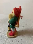 Add a touch of whimsy to your holiday decor with this charming vintage handmade gnome ornament. Dressed in a handcrafted Nordic green coat with intricate wood detailing, this delightful elf is sure to enchant any Christmas collection. With a height of 3 inches, it perfectly captures the rustic design and hand-painted details that bring its character to life. This unique ornament is a single piece that embodies the spirit of the season. Celebrate Christmas with this one-of-a-kind felted woodlands gnome, an elegant addition to your festive decorations. It's not just an ornament; it's a piece of art that represents the joy and magic of the holiday.
