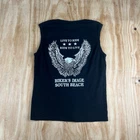 This vintage black muscle tank top is a must-have for any Harley-Davidson fan. The round neckline and sleeveless design make it perfect for the summer, fall, or spring seasons. The knit fabric type and cotton material are lightweight and breathable, making it comfortable to wear during any activity. The tank top features a limited edition graphic print with the Live To Ride character and motorcycle theme. It is a regular fit and comes in size 2XL. The garment care is easy, as it is machine washable. This VTG Harley-Davidson Motorcycles Live To Ride Muscle Tank Top is a perfect addition to any collection.