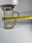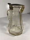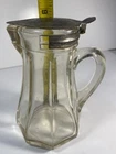 Add a touch of elegance to your table setting with this vintage Heisey glass creamer/syrup pitcher. The metal lid adds a classic touch to the beautiful clear crystal glass. Handmade in the United States in 1915, this piece is a true antique and a wonderful addition to any collection. The production style is elegant glass and the item weighs 1lbs. 4oz. It stands at 6 inches tall and is perfect for serving cream or syrup. This Heisey glass creamer/syrup pitcher is a must-have for any vintage glassware collector. Item is is in very good used condition, no chips ,metal lid has a great patina,shows its age . Item will be packed quickly and shipped safely by USPS ,FedEx or UPS DEPENDING ON BUYERS LOCATION. THANKS