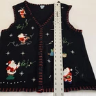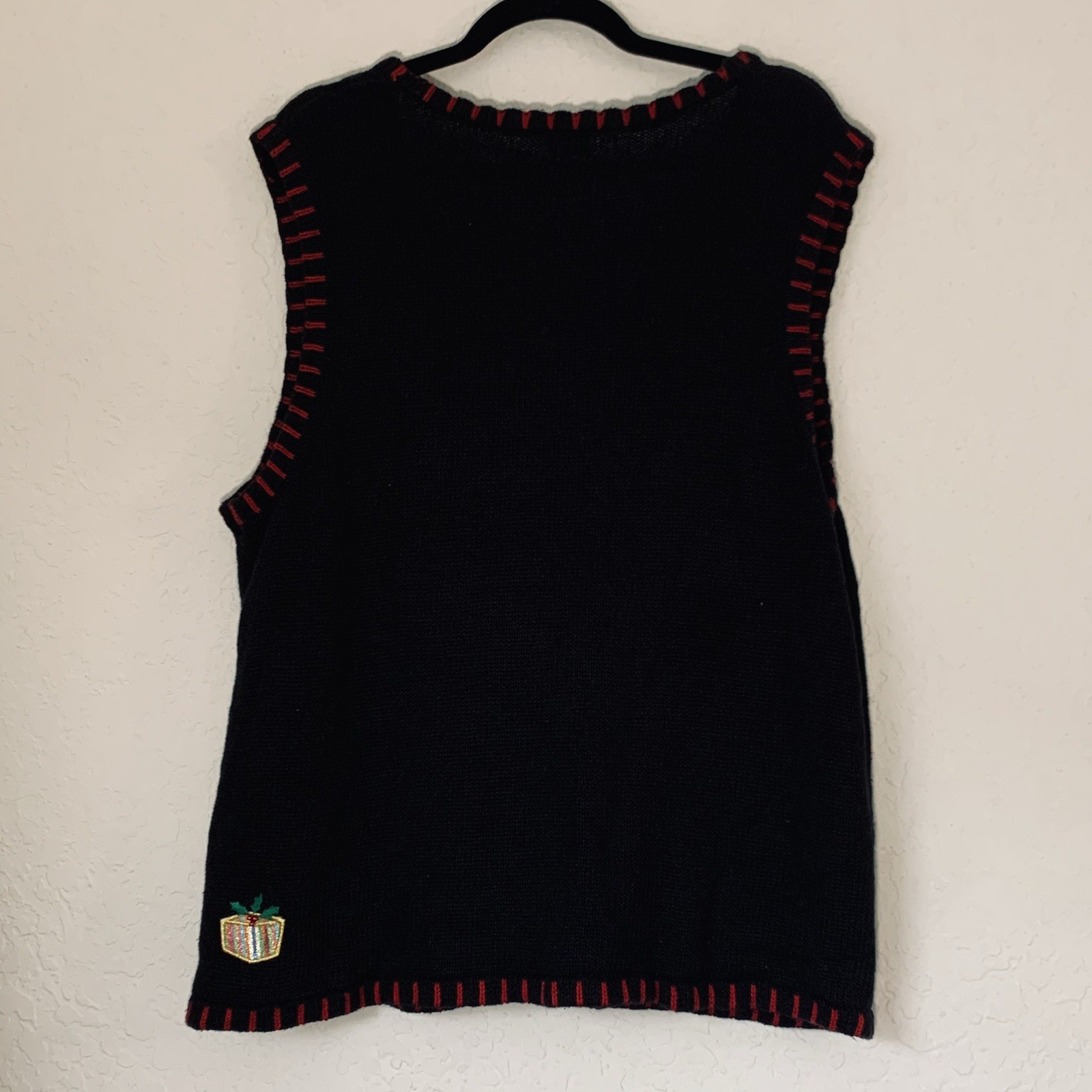 - VTG Holiday Editions Sweater Vest Women XL Black Knit Christmas Santa Ramie/Cotton/Polyester Gently used preowned condition. See photos for proper expectation of condition. Please see photos for measurements FAST Shipping! 1-3 business days. Tags: everyday versatile comfortable easy to wear classy casual favorite y2k 80s 90s 018353 vintage grandmacore mom holiday christmas festive ugly sweater contest teacher academic