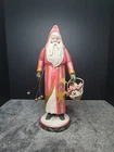 Noticable wear as shown, overall good condition. This vintage House Of Hatten Santa figure is a unique addition to any Christmas decor. Crafted from wood in 1988, this handmade sculpture features a multicolor goose basket and is perfect for collectors of other holiday memorabilia. The figure is 15 inches tall and has a charming personality that will bring joy to your home. Celebrate the holiday season with this one-of-a-kind piece.
