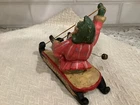 Two vintage House of Hatten ornaments 1988 features a Santa in sleigh, and a Santa holding bells and a star. Both in good condition. Please see photo for details and measurements. Thank you for shopping with us. Please like and follow our store. Packaged carefully and shipped from a smoke and pet free environment.