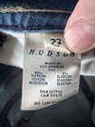 The VTG Hudson Jeans Women's 27 Low Rise Flared Bootcut with Flap Pockets offer a stylish and vintage look with modern comfort and stretch. Made in the United States, these jeans feature a zip and button closure, light to medium fabric wash, and flared bootcut style. With a low rise waist and flap pockets, they are designed for a flattering fit and come in a classic blue color. The brand's logo accents add a touch of sophistication to these timeless and trendy jeans.