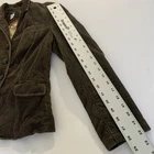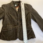 - J Crew Corduroy Blazer Jacket Women Small Petite Dark Brown Woven Leather Buttons 100% Cotton Front Pockets Functional 4 Button Cuffs Notch Collar Gently used preowned condition. See photos for any flaws & proper expectation of condition. Please see photos for measurements FAST Shipping! 1-3 business days. Offers welcome! Tags: everyday versatile comfortable easy to wear classy casual favorite y2k 80s 90s schoolboy Dark Academia Grunge Goblincore preppy classic school city designer outdoor college Vintage Y2K southwestern boho western rodeo campbell Ludlow ribbed 02542 business career office