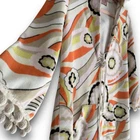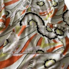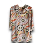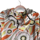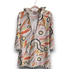 Absolutely stunning early 2000s American made Juicy Couture iconic hoodie dress made from plush cotton terry cloth and comes in a fun mod retro style floral print in cream, brown, yellow, and orange multi colors, deep v neck with front drawstring, front pocket and flared 3/4 sleeves in size small with precious one of a kind quality Pom Pom trim details! Excellent pre owned condition. Laid flat measurements: chest 17.5” length 30” sleeves 18”