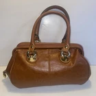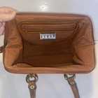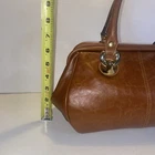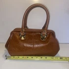 Vintage KENAR Chestnut Brown Faux Leather Handbag Purse No Shoulder Strap Taiwan ROC excellent used condition ***** NOTE This purse is listed as faux leather because NO tag indicates it is leather but it sure feels like leather. ***** NOTE This purse has handles to carry as a hand bag and has hardware to attach a shoulder strap but there is NO shoulder strap.
