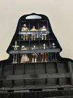 This vintage Kenner action figure lot is a must-have for any Star Wars fan. Featuring iconic characters such as Princess Leia, Dengar action figure, Hans Solo, Bounty Bossk Boba Fett, Farmboy Luke Skywalker, Bossk Bounty Hunter, Luke Skywalker Jedi Knight, IG-88 Bounty Hunter and Bespin Luke Skywalker. this collection is sure to bring back memories of the original series. The figures are made of plastic and are in scale 1:18. The set also includes a case for storage and display. This lot is original and was manufactured between 1977-1983. It is perfect for collectors and enthusiasts aged 4 and up. The figures are multicolored and in great condition. Add this amazing collection to your Star Wars memorabilia today! CASE SIDE CLIPS ARE BROKE. TOP CLIP WORKS