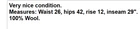 Very nice condition. Measures: Waist 26, hips 42, rise 12, inseam 29". 100% Wool. THANK YOU EBAY!!! We are so thankful for our customers! We have thousands of listings, and therefore receive hundreds of messages, every single day. So, if you are asking about a price drop, or a shipping price drop, or asking for extra measurements, or to add additional photos, please allow me to answer you here, No thanks. If your question is not one of those questions, we will be happy to answer you individually. YES....WE DO COMBINE DOMESTIC SHIPPING! Extra jewelry items ship for $2 each. We will refund the difference as we are mailing out. Does not include large jewelry lots. We encourage you to read the description and check all photos.