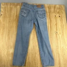 Experience the classic comfort and style of vintage Levi's with these straight-leg jeans in a relaxed fit. Designed for the modern man, these jeans feature a high rise, zip closure, and the iconic 5-pocket design. The light stonewash gives these jeans a timeless look, perfect for any casual occasion. Crafted from durable denim, these jeans are machine washable for easy care. The solid blue color and Levi's logo accents make these jeans a versatile addition to any wardrobe. Whether you're out for a walk or meeting friends, these jeans will keep you comfortable and stylish all year round. SKU:22-0023