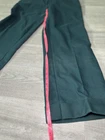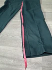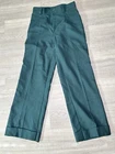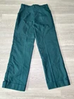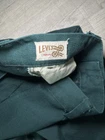 Elevate your wardrobe with these stunning emerald green Levi's dress pants. These vintage high-waisted trousers are perfect for any occasion, from travel to workwear. With a knit fabric type and cuffed legs, these pants offer both comfort and style. The pants feature a flat front and a wide-leg style, with a regular fit for a flattering silhouette. The pants come with both a button and zip closure, and have several accents, including pockets and a breathable feature. These pants are perfect for any season, whether it's summer, fall, or spring. Handmade and machine washable, these pants are a must-have for any fashion-forward woman.