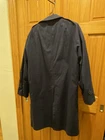 This is a vintage London Fog Maincoats men's trench coat in size 40, navy blue with a detachable fur liner. Made of polyester cotton, it has a button closure, spread collar, and is lined for warmth. This mid-length coat is water-resistant and suitable for all seasons, making it ideal for travel, casual, workwear, or business occasions. If there isn’t an early era James Bond-core aesthetic, there should be and this coat would be a must have. It’s the finishing touch to putting your best foot forward for client meetings, family outings, date nights to the theater. No identifiable flaws. No visible wear.
