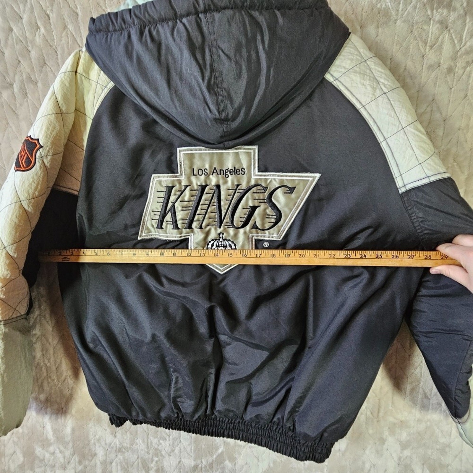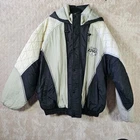 Rare starter jacket, I haven't been able to find another one. In good pre owned condition, has some bleeding between the white and black as shown in photos.