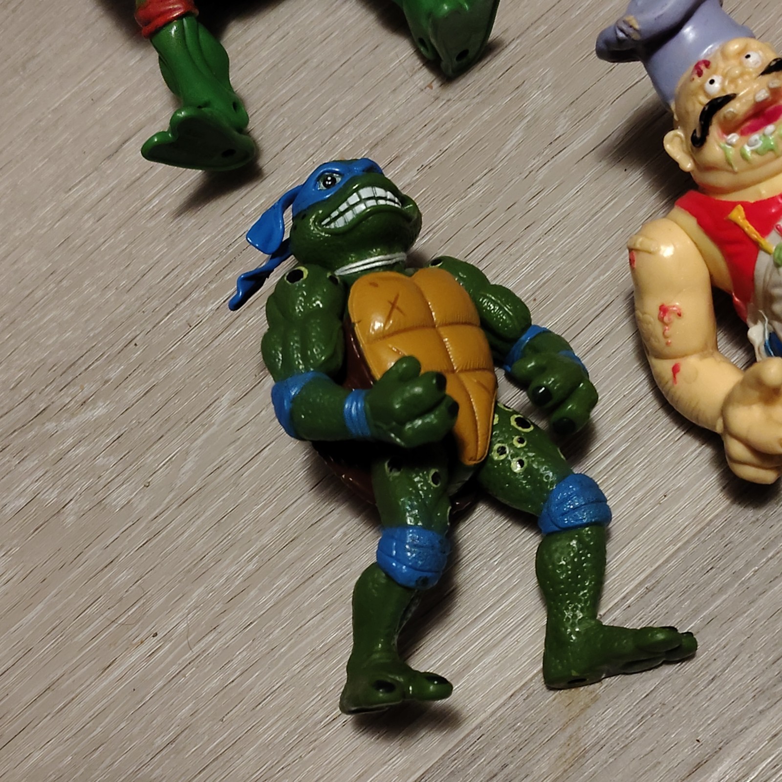 mutations vintage raph, all working, movie leo, tattoo , and the chef fella. forgot the name sorry. decent little lot.