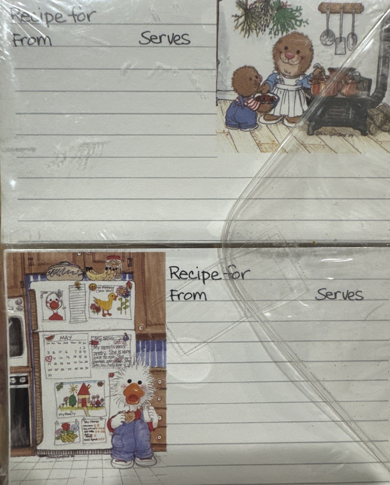 The product is a lot of Suzy's Zoo cute bunny duck recipe cards, totaling 24 count. These vintage cards are from the United States and feature adorable bunny and duck illustrations, perfect for Easter, spring, and summer themes. These collectible paper items are sure to bring a touch of whimsy to any collection or kitchen. Estate item sold as is - new old stock 1989