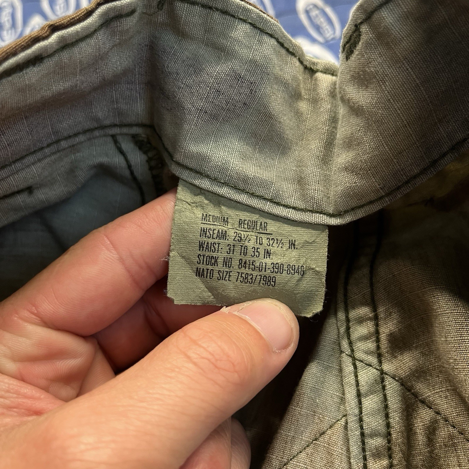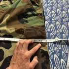 The product is a pair of men's medium regular size woodland camo pants, featuring a button fly and cargo style design. Made in the USA, these high-rise pants have a 31-inch inseam and 34-inch waist size, with a multicolor camo design that is perfect for outdoor activities or military-inspired fashion. With the brand being Camo, the pants are ideal for those looking for a rugged and versatile addition to their wardrobe.