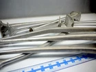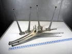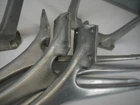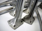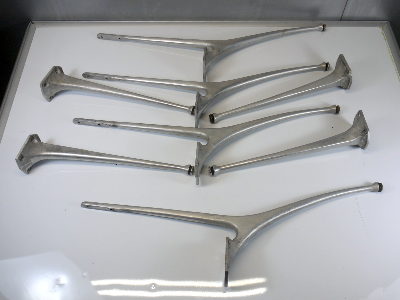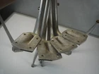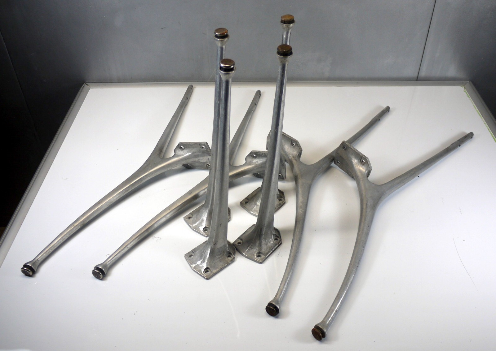 Just as found. Just as pictured. Wear, patina and oxidation consistent with age and use. Ships professionally packaged UPS ground to the lower 48 only for a flat $39.95. No PO Boxes. Includes: 4 rear legs/back supports measuring 28.5" tall, 6" deep and 3 " wide 4 front legs measuring 16" tall