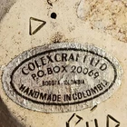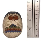 Vintage Miniature Ceramic Owl Handmade Colombia Beige Blue Red Unique Adorable Approximately 2" x 2.5" Weighs approximately 3 oz Very good vintage condition. Has some minor wear and tiny spits of paint loss. See photos.