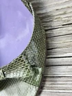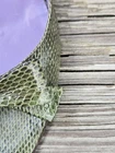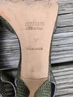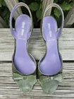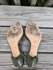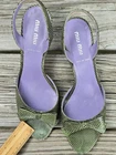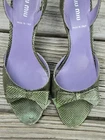 An absolutely adorable pair of vintage Miu Miu green embossed leather snakeskin heels. With a green color and sweet bow to top it off, these are a stunning pair of vintage designer slingback heels. - Authenticated (see photos). - Size: EU 37 / US 6.5 / UK 4 Preowned in good condition with some wear as shown in the photos both at the heel and the interior. Please take note of these before purchasing. Bin C PLEASE NOTE π Please take your time to review the photos closely as they are part of the item's description. We always try to present colors as accurately as we can, but keep in mind that colors may show up differently on different devices. We do our best to take all photos in natural light during the day, so as to ensure that any noticeable flaws are visible in the best lighting. π We include written measurements in our descriptions where applicable or show the measurements in the photos. π We pack everything as carefully as we can and all orders come from a clean, pet-free, smoke-free space. π All of our items are sold as is. We do not accept returns. If you have any questions or need to see another photo or two, feel free to reach out; we are more than happy to help! Warmly, Tamy (Narrow Path Expo)