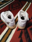 The product is a pair of vintage Nike Air Force One sneakers in size 10.5 for men. These high top white sneakers feature a solid pattern with a lace-up closure, rubber outsole, and leather upper material. They are perfect for casual occasions and basketball performance during the summer and spring seasons. The sneakers are signed by Nike and are part of the Nike Air Force product line, offering comfort and style for athletic activities. Made in Vietnam, these sneakers are a classic addition to any sneaker collection. Yellowing for that streetwear blokecore granolacore gorpcore aesthetic silhouette