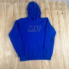 Elevate your casual wardrobe with this stylish and comfortable Nike hoodie. Made from a cotton blend and featuring a solid pattern, this pullover is perfect for all seasons. The hoodie comes in a beautiful blue color with a silver Nike logo embroidered on the chest, adding a touch of style to your outfit. It has a crew neck and drawstring closure, making it easy to wear and adjust. This hoodie is perfect for gym & training, basketball, running & jogging, or simply for a casual day out. It has long sleeves, pockets, and is machine washable. The Nike Sportswear product line is known for its quality and durability, making this hoodie a great addition to your collection. Get your hands on this vintage-looking hoodie and add a touch of 90s sports USA vibe to your wardrobe.