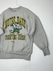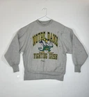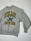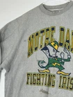 VTG Notre Dame Fighting Irish Sweatshirt NCAA XL Gray Graphic 90s Distressed Kinda poor - to - okay condition overall distressed vintage sweatshirt - see ALL photos very closely Size XL - fits more large sizing though Sweatshirt has pretty heavy distress throughout - mostly on the front side - marks /little stains / paint /spots - etc front side has various marks all around the graphic throughout - little bit on back side /sleeve cuffs dirty marks - some discoloration staining/fade throughout - see photos see ALL photos very closey for condition of the crewneck Will ship with care