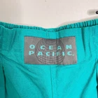 Vintage OCEAN PACIFIC 80s Deadstock Aqua Pleated Tapered Leg Pants Surf Skate Deadstock NOS new with tags 1980s OP Ocean Pacific logo patch at waist Pull on with elastic waistband side pockets one back pocket Pleated Tapered leg Adjustable hook & loop tab on back of cuffs Unisex. vintage size xl see measurements *approximate measurements: waist- 14" across rise- 12" inseam- 27.5"