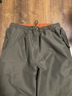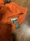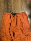 Used but still In amazing condtion. Tagged medium with waist measures 32in. With elastic waist and drawstring could best fit 30-36in. Orange side is a cargo pants and olive green side is a straight windbreaker pants. Tag says inseam is 32in but I have inseam at 27in when I measure.