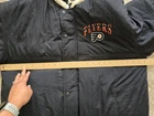 Vintage Philly Flyers NHL Starter Jacket. - Embroidered logos. - Lined. - Color blocked/two toned. - US men's size large. Preowned in food condition (see photos). Jacket hood is not available. PLEASE NOTE π Please take your time to review the photos closely as they are part of the item's description. We always try to present colors as accurately as we can, but keep in mind that colors may show up differently on different devices. We do our best to take all photos in natural light during the day, so as to ensure that any noticeable flaws are visible in the best lighting. π We include written measurements in our descriptions where applicable and also show the measurements in the photos. π We pack everything as carefully as we can and all orders come from a clean, pet-free, smoke-free space. π All of our items are sold as is. We do not accept returns. If you have any questions or need to see another photo or two, feel free to reach out; we are more than happy to help! Warmly, Tamy (Narrow Path Expo)