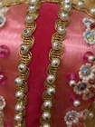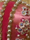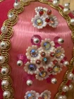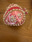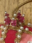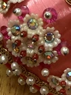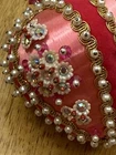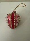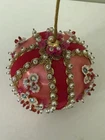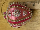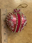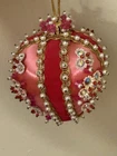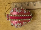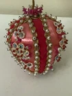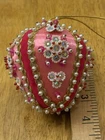 Beautiful vintage Pink Christmas Ornament Push Pin Bead Rhinestone Pearl Flowers Gold Trim Good vintage condition- refer to pictures