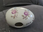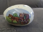 This vintage porcelain egg trinket box is a charming addition to any collection. With a beautiful rural country pattern and multicolor design, it is perfect for storing small keepsakes. Measuring at 3 inches in length, it is a great size for displaying on a shelf or using to store jewelry. The oval shape and glossy finish add to its elegance, while the H.B. brand ensures its quality. This original piece is from the United States and is not handmade. It is a must-have for any lover of country style decorative collectibles.