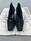 These vintage Prada heels from the 2000s are a stylish and rare find for any fashion-forward woman. Made in Italy, these black heels exude a sense of high fashion with a Y2K designer flair. The size 39 1/2 translates to a US women's size 8.5, making them perfect for special occasions like cocktail events. With their original design and high-quality craftsmanship, these Prada heels are a unique addition to any wardrobe for those who appreciate vintage luxury fashion.