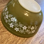 Elevate your kitchen decor with the vibrant VTG Pyrex Crazy Daisy Nesting Mixing Bowls, a charming three-piece set that brings a touch of retro flair to any setting. Crafted with care in the United States, these bowls feature the classic Crazy Daisy pattern, boasting an array of bright green flowers that are sure to add a splash of color to your countertops and tables. Each bowl in the set— sizes 401, 402, and 403—sports a durable glass construction that is both oven safe and stackable for convenient storage. The round shape and mid-century modern style make these bowls a perfect match for all occasions, whether you're mixing up a batch of cookies or serving a festive dinner. Don't miss the chance to own this original piece of American heritage, a testament to the timeless elegance of Pyrex craftsmanship.