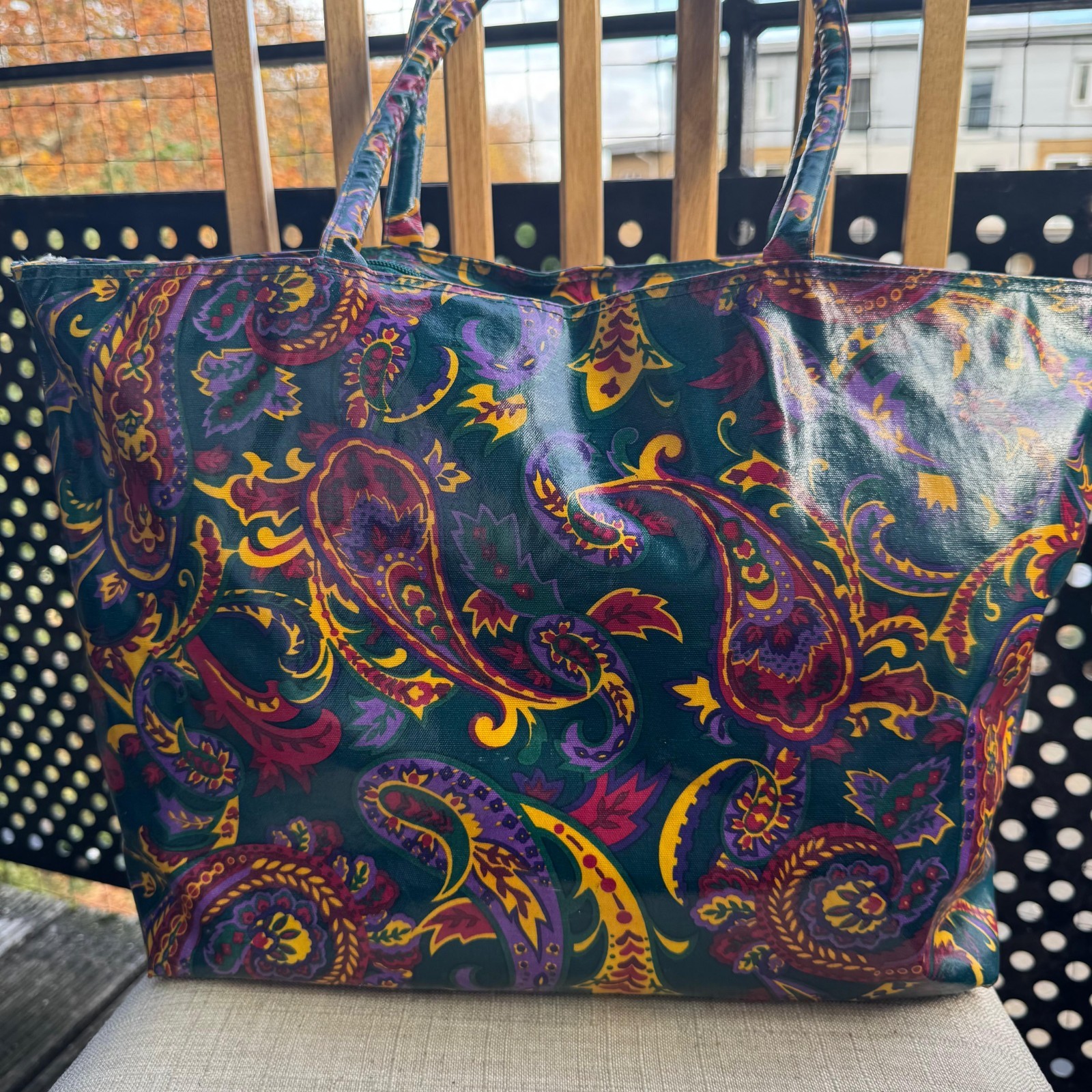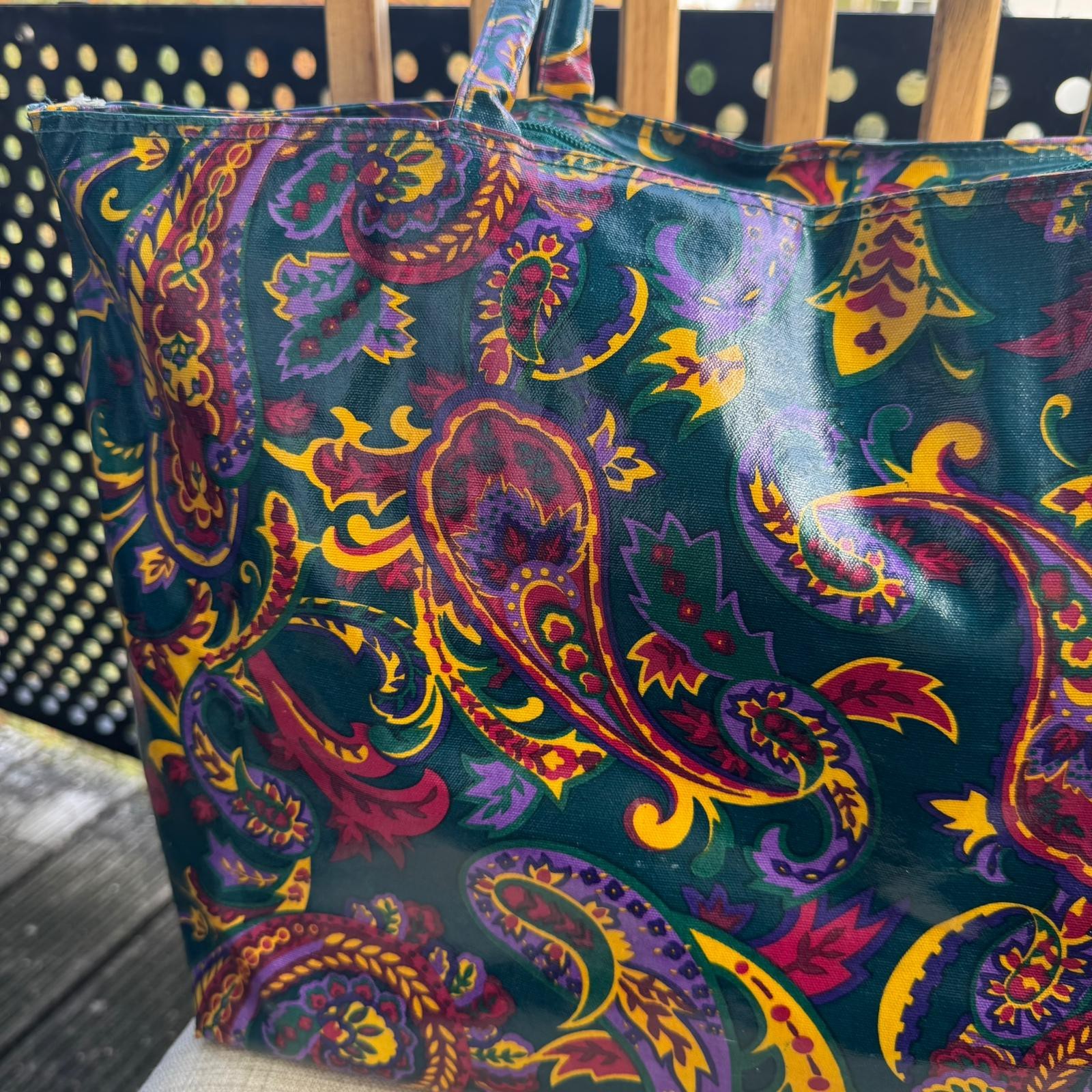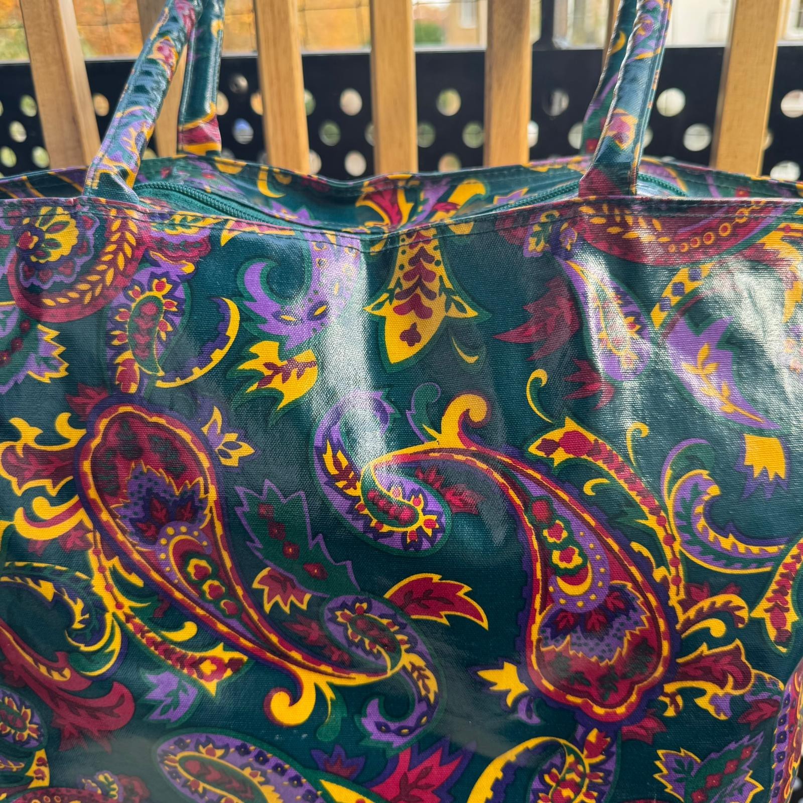 This vintage and rare BHS Women's Tote Bag features a vibrant paisley pattern in deep teal green, making it a stylish and unique accessory for any outfit. The tote style offers plenty of space for all your essentials, making it both fashionable and practical. Perfect for those who appreciate discontinued pieces that are no longer available, this bag combines retro charm with a bold and eye-catching design.