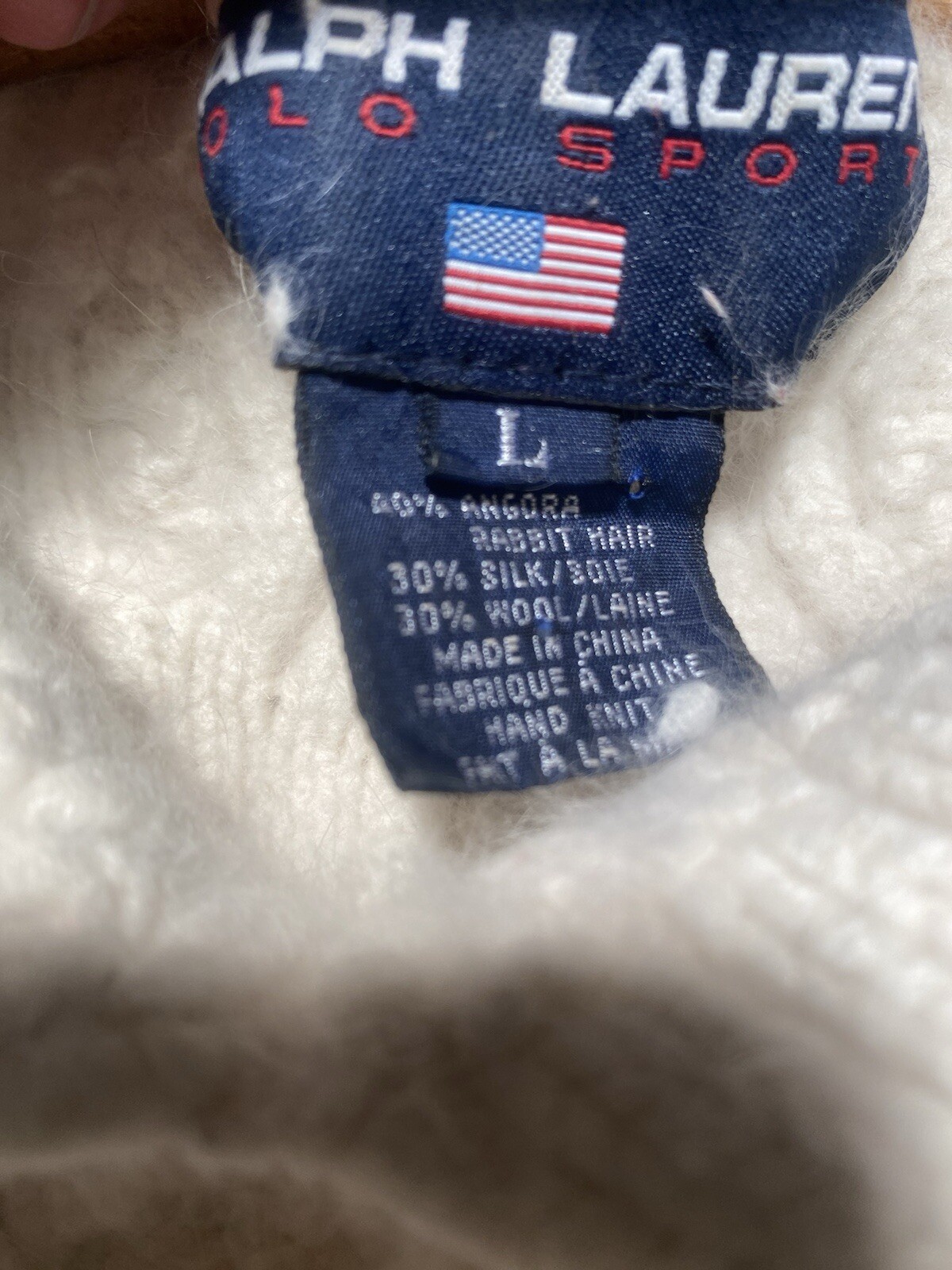 Beautiful angora silk wool blend sweater. Ralph Lauren. Size tag says large, However please see true Measurements in pictures. Pit to pit measurement is approximately 21 inches and length is approximately 27 inches. Vintage thick fisherman cable knit style sweater. Ships the next business day after payment.😊
