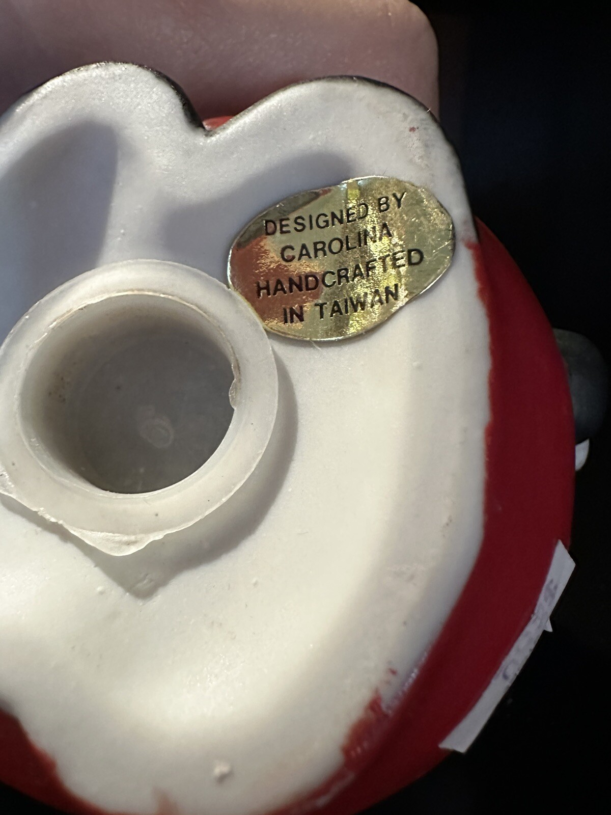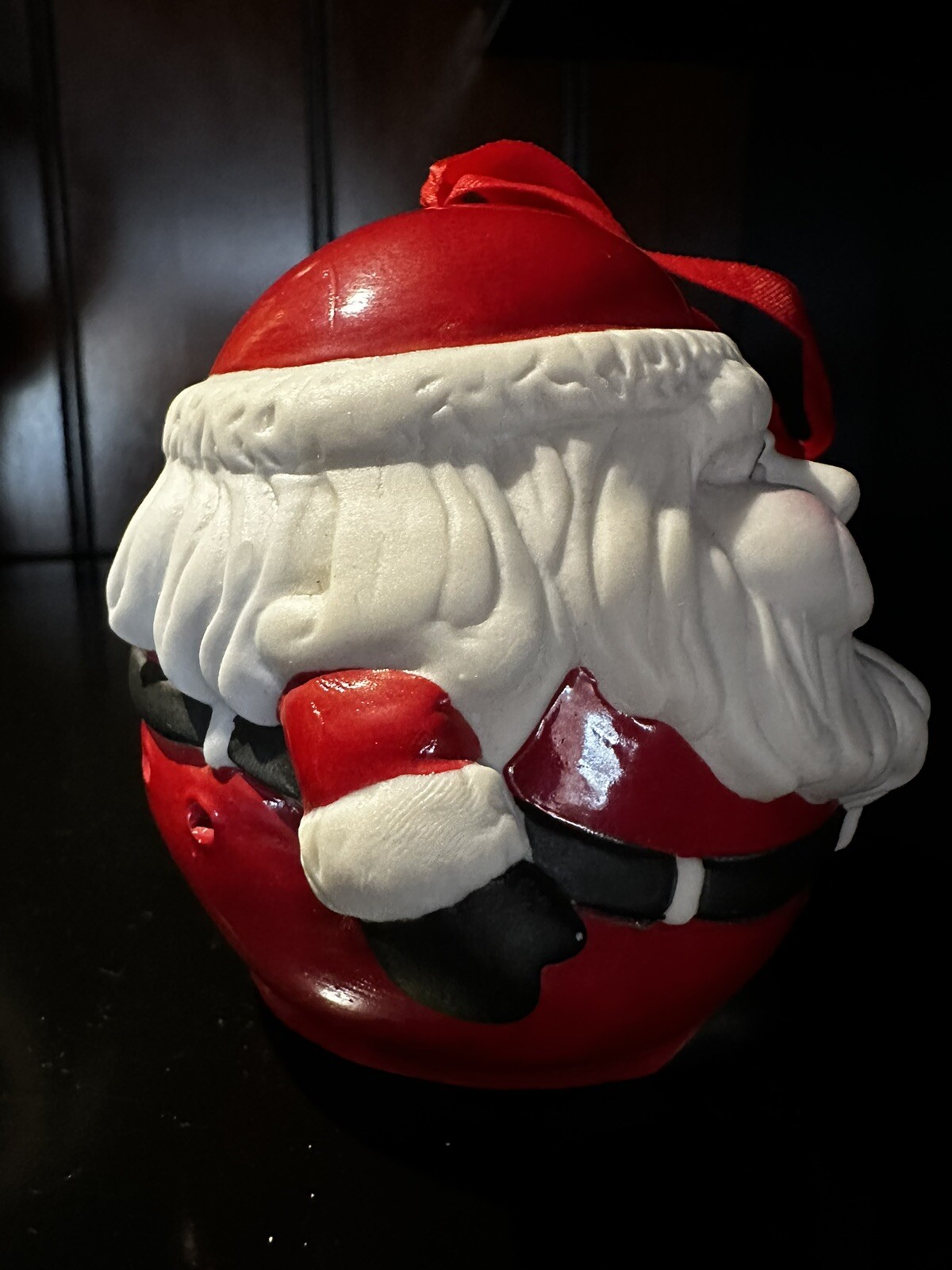 VTG Ceramic Bisque Roly Poly Poppouri Santa Ornament Designed By Christina RARE. Mint Condition, made in Taiwan 3”x 3”. Bb-1031-199-11/24’