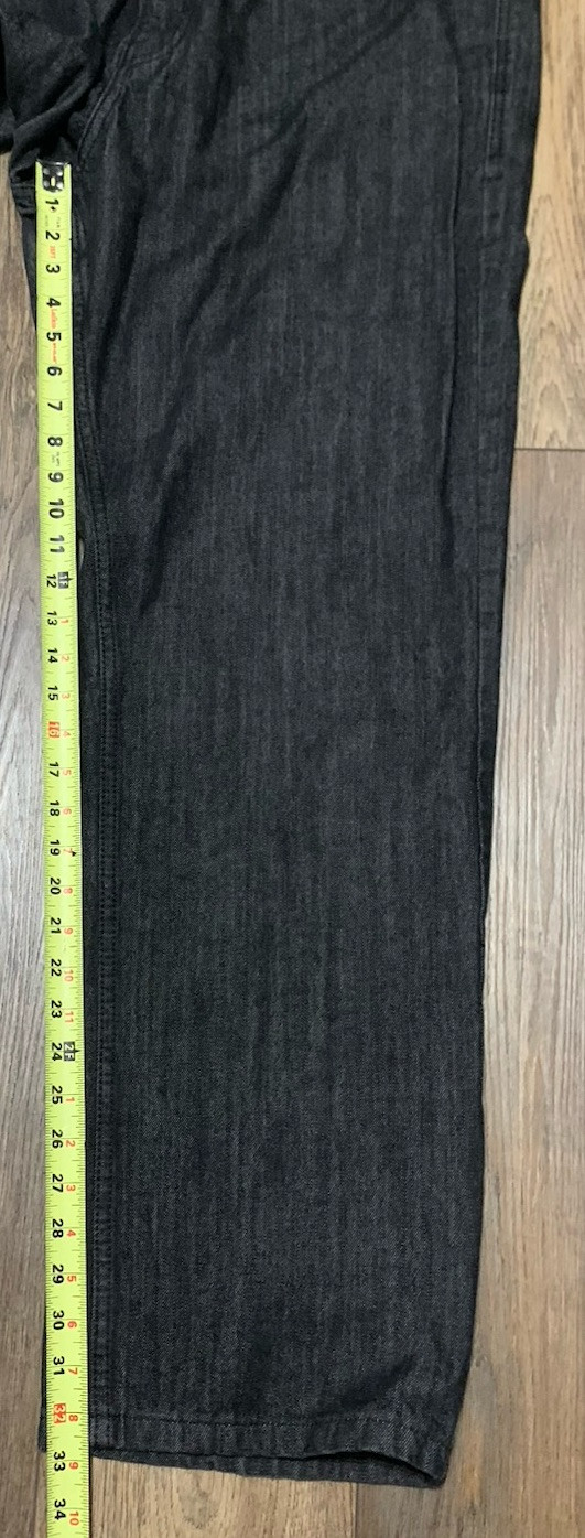Embrace the timeless appeal of Rocawear with these vintage black baggy jeans, tailored for a relaxed fit that offers ultimate comfort. Crafted from durable cotton denim, these wide-leg jeans are a testament to classic 90s hip-hop style, featuring a high-rise waist and a versatile dark wash that complements any wardrobe. The jeans come equipped with a convenient 5-pocket design, ensuring your essentials are always within reach. Machine washable for easy care, they are suitable for all seasons—fall, spring, summer, and winter. With a secure zip and button closure, these size 38 jeans with a 33-inch inseam are a staple for any fashion-forward individual.