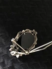 Add a touch of vintage beauty to your jewelry collection with this stunning sterling silver brooch. The intricate camasite design features a beautiful oval-shaped onyx stone, which adds a touch of elegance to any outfit. The piece is crafted in Italy and comes with a 20-inch 925 box chain, making it a perfect addition to your everyday wear. The brooch is made of high-quality materials, including shell and marcasite, which adds a unique touch to the piece. The jewelry department is fine, and the theme is beauty, making it a perfect gift for someone special. This vintage brooch is a must-have for any jewelry enthusiast who wants to add a touch of classic beauty to their wardrobe.