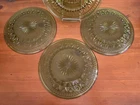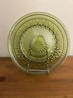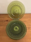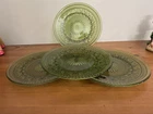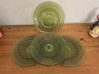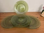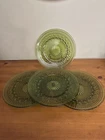 Vintage Colony Park Lane Avocado Green Glass Luncheon Salad Plates Set Of 4 Heavy thick cut glass Approximately 8” Good vintage condition-refer to pics