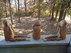 VTG See No Evil Hear No Evil Speak No Evil Monkeys Jointed Legs Shelf Sitting Figural Buddhist Japanese Chinese Folk Art Style Decorations These all have a fair amount of paint chipping all over as well as marks or rubbed spots. I have shown all of these in the pictures, some of these close up. Please see all pictures. These are very lightweight. I believe they may be wood because in the pictures showing a close up of a joint on the leg you can see that it is splintered. I am not sure if they are all hand carved painted wood or some resin material as well.
