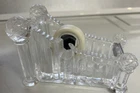 This vintage tape dispenser is a beautiful addition to any desktop. Made of lead crystal and glass, it exudes elegance and sophistication. The ornate design adds a touch of glamour to your workspace. Crafted with care, this tape dispenser is a unique collectible item. It is perfect for those who appreciate vintage pieces or those who are looking for a conversation starter. The country/region of manufacture is unknown, but the quality of this piece speaks for itself. Add a touch of charm to your desk with this stunning piece. Excellent condition!