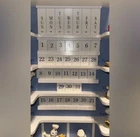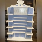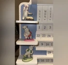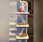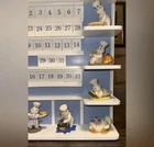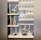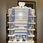 The Pillsbury DoughboyTM Company Character Calendar Figurines Collection The Danbury Mint Vintage 1997 Collector's Item Weekly Monthly Wooden White/Light Blue Wall Shelf Figurine Holder & 12 Piece Ceramic Doughboys Collectibles Hard To Find • Discontinued • Rare • Vintage You will receive everything in the photograph. Everything in great condition. One ceramic figurine has an imperfection, as shown in the photographs. It's still useable. It doesn't look detached unless you pick it up. It can be glued back together easily. I have just left it in its original condition. This piece is 27 years old! Dimensions: 23" Height 15.5" Width 4" From Wall 8.5 Ibs Weight (before packing & shipping) It will be shipped with extreme care. Shipping Box: 25X18x10 Weight 12.5lb UNIT 2